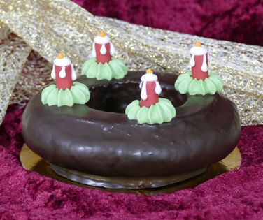 Ein Adventskranz, der nicht verstaubt, sondern einfach aufgegessen werden kann. Köstlicher Baumkuchen verziert mit vier Kerzen aus Zucker. Eine ideale Idee zum Verschenken.